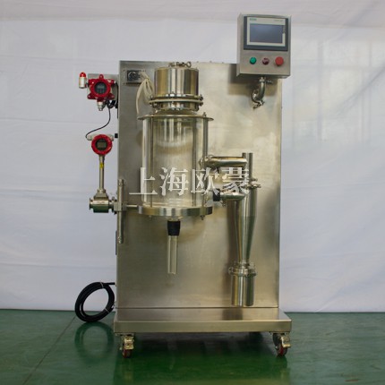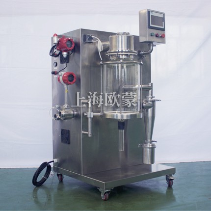 小型噴霧干燥機主要在科研階段對溶液或流體樣品進行噴霧干燥成粉或微小顆粒。其原理是通過霧化器將樣品霧化成微細霧滴,進入干燥室內(nèi)進行熱交換,水份瞬間蒸發(fā),固體經(jīng)過旋風分離器進行回收,飽和氣體經(jīng)過除塵器過濾后排空,本設(shè)備可應(yīng)用于從試驗室到一般研究室的噴霧干燥作業(yè),在食品醫(yī)藥化工行業(yè)均可良好的應(yīng)用。